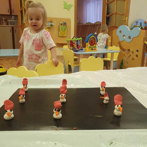 "Снеговики на прогулке" - так называется, коллективная творческая работа наших самых маленьких воспитанников группы "Карапуз"!