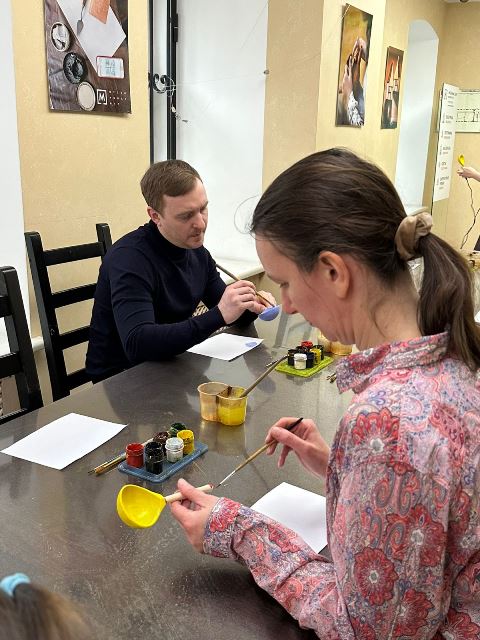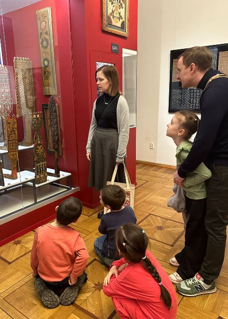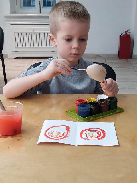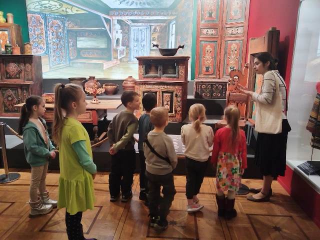 А после, рассмотрев как украшены старинные предметы народного искусства, мальчики и девочки, а также их родители, вдохновившись, расписали в мастерской деревянную ложку на память о своем музейном "путешествии" к собирательному образу русского дома с его особым укладом, гармонией устройства, красотой, богатством символов и чувством прекрасного!"
