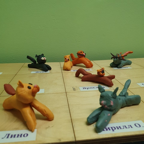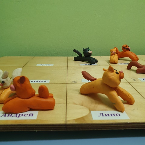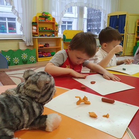 У одних котики были прыгающими, у других- лежачими, у третьих- сидящими. Ребята научились из деталей собирать целый образ.