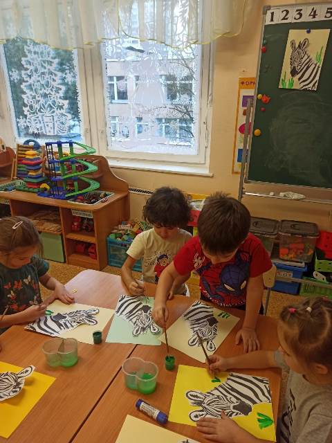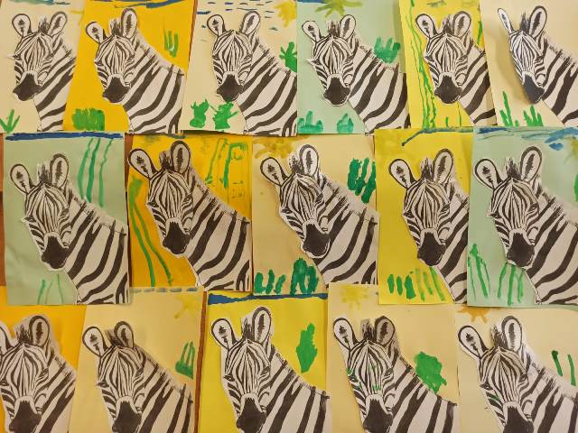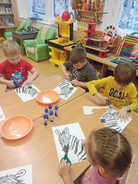 Ребята запечатлели в своих работах этих замечательных животных. Обратили внимание на схожесть полосок зебры с полосками пешеходного перехода на дороге. Зебровые полоски помогли ребятам правильно переходить дороги. Дети с удовольствием играли в лото зоопарк, игру "Изобрази и отгадай животное ", конструировали для зебр саванну.