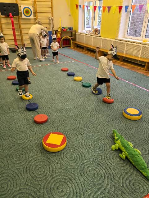 А на физкультурном занятие наши "маленькие зебрята" соревновались и проходили испытания - кто же самый сильный и ловкий!