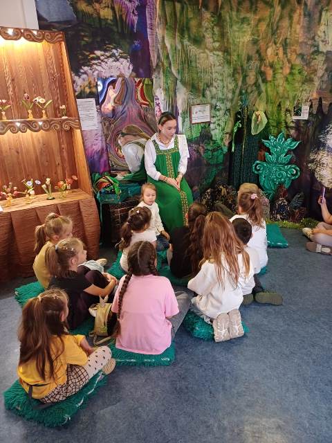 В нашей подготовительной группе "Теремок" дошкольного отделения "Солнышко" прошла тематическая неделя "Медной горы хозяйка", посвящённая творчеству П.П. Бажова. Различные мероприятия, с использованием разнообразных форм работы, были проведены с ребятами. А начали мы с посещения музея П.П. Бажова. Предварительно, перед посещением музея, воспитатели познакомили детей с биографией и творчеством писателя. Дошкольники познакомились с героями сказов: «Серебряное копытце», «Огневушка-поскакушка», «Медной горы хозяйка» и т.д. Каждый день приносил нам новое знакомство с очередным сказом, дети с удовольствием их слушали, а затем пересказывали наиболее запоминающиеся моменты, сочувствовали героям, переживали за них.