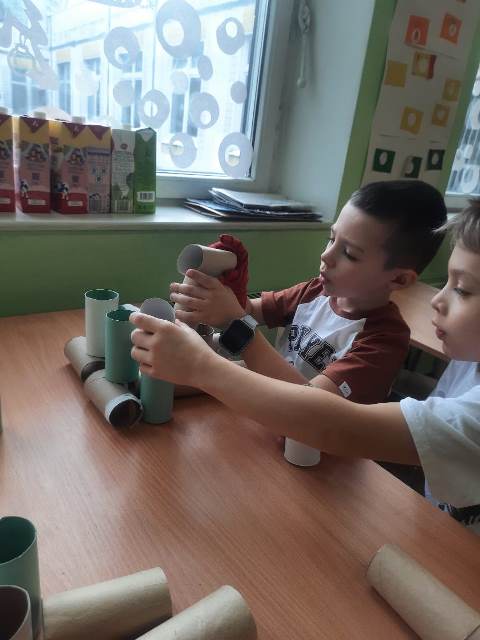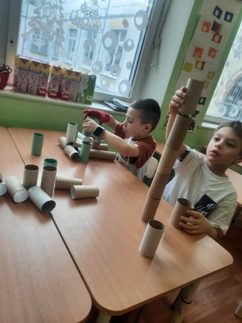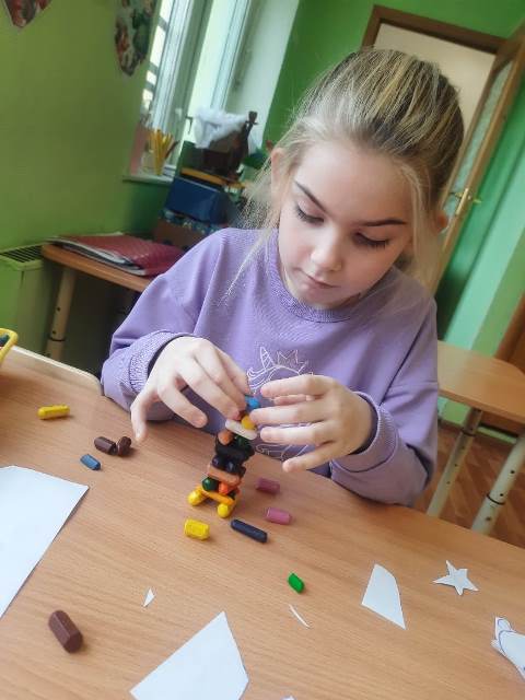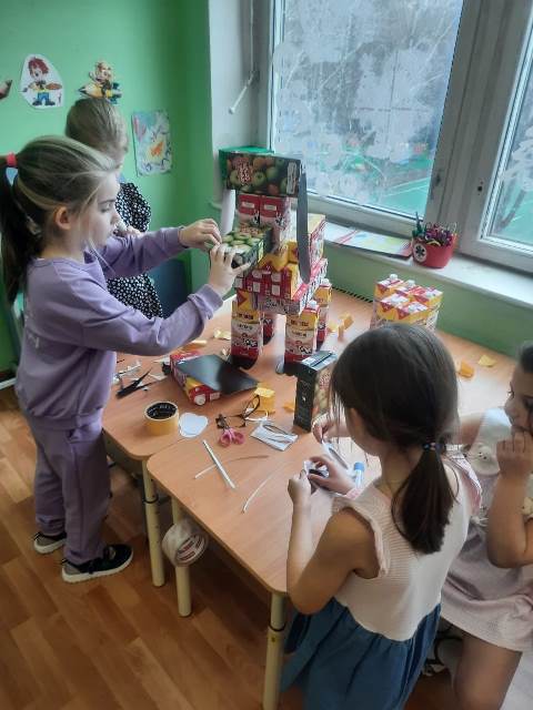 В течение всего дня дошкольники сосредоточенно занимались разными видами детской деятельности: лепили, рисовали, вырезали, раскрашивали... Некоторые ребята стали «усовершенствовать» все то, что было сделано ими в первые дни недели, другие - придумывали новые атрибуты к сюжетно-ролевым играм.