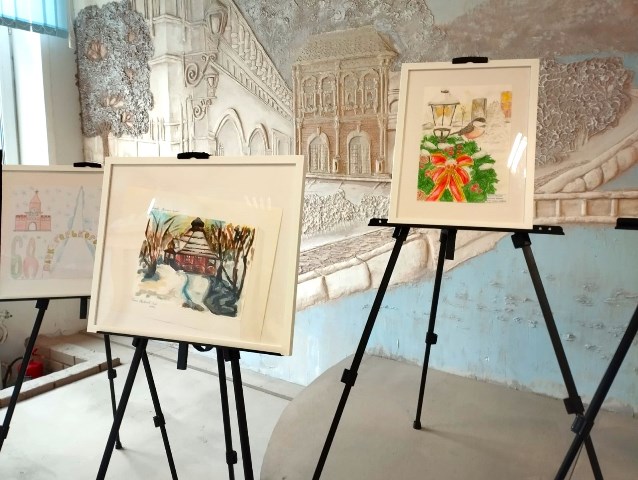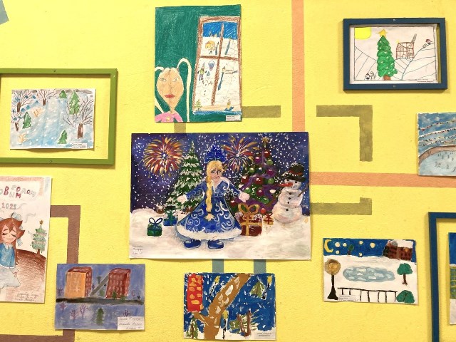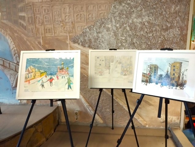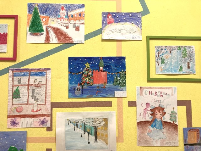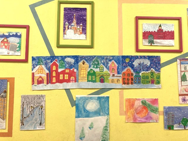 В рамках "Недели искусства" в нашей школе была организована выставка рисунков, посвященная конкурсу «Зима в Москве».