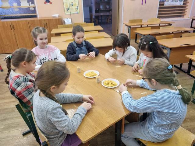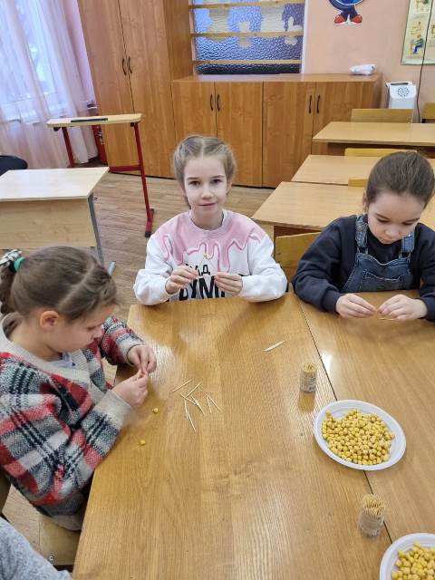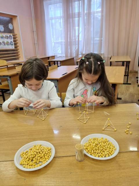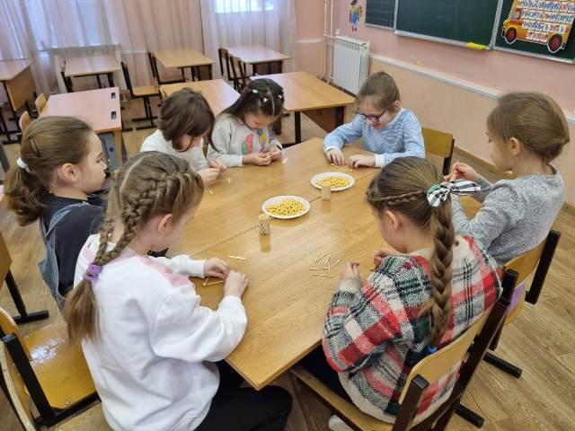 В 1В классе состоялась математическая мастерская с использованием горохового конструктора.
