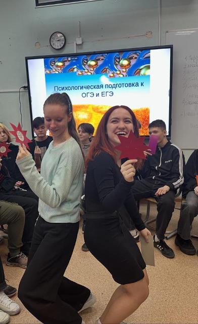 Ольга Владимировна научила ребят снижать эмоциональное напряжение и уровень тревожности. Познакомила с понятием ассертивность. Через игры и упражнения девятиклассники научились преодолевать проблемы и трудности экзаменационного периода.