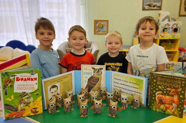 Ребята группы "Веселинка" в честь дня рождения Виталия Бианки всю неделю путешествовали по его сказкам, рассказам. А по рассказу "Сова" ребята смастерили забавную поделку!