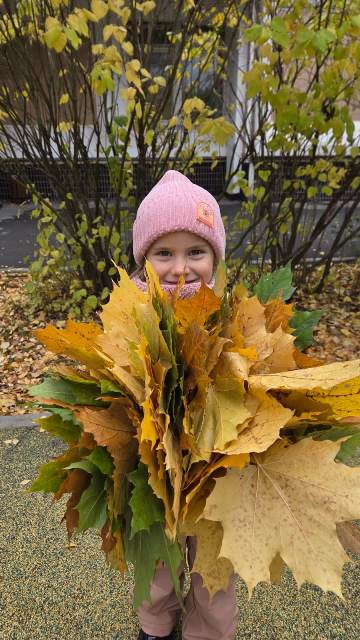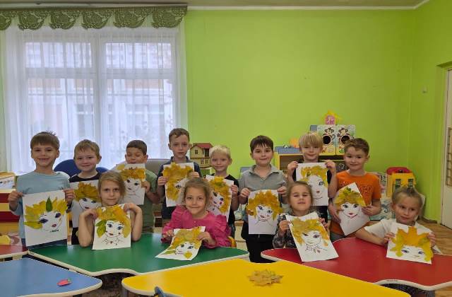Вот и ребята группы "Веселинка", собрав на прогулке букеты из осенних листьев, занялись творчеством, изобразив "Госпожу осень".