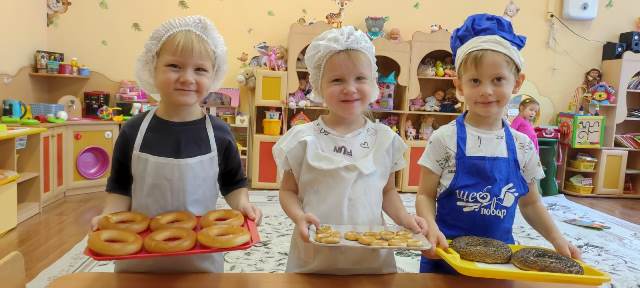 Дети с большим энтузиазмом примеряли на себя роли пекарей и продавцов, «пекли» и «продавали» хлебобулочные изделия.
