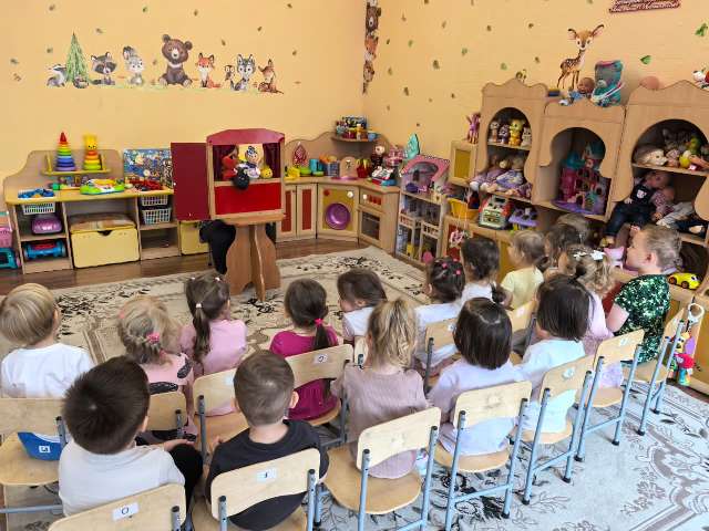 В завершении тематического дня, воспитатели показали воспитанникам группы кукольное театрализованное представление "Колобок".