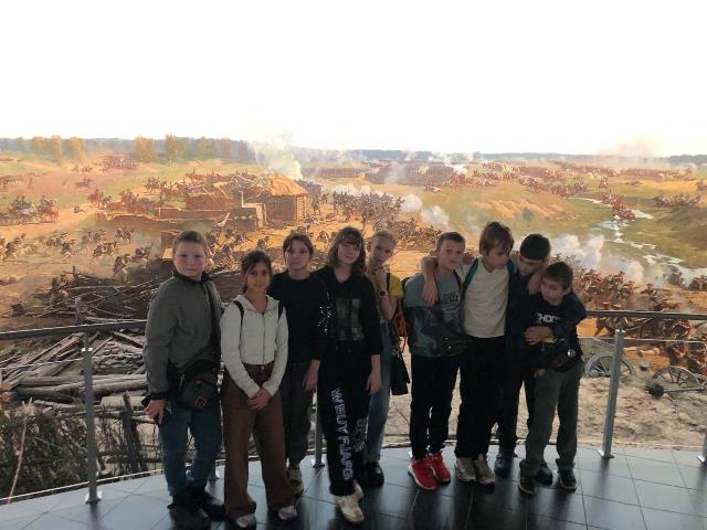 Большое впечатление оставила панорама - одна из самых больших панорам в мире. Дети оказались на передовых позициях русской армии в самый разгар Бородинского сражения и узнали, как разворачивались события 7 сентября 1812 года; узнали о составе и расстановке войск, о потерях и подвигах.
