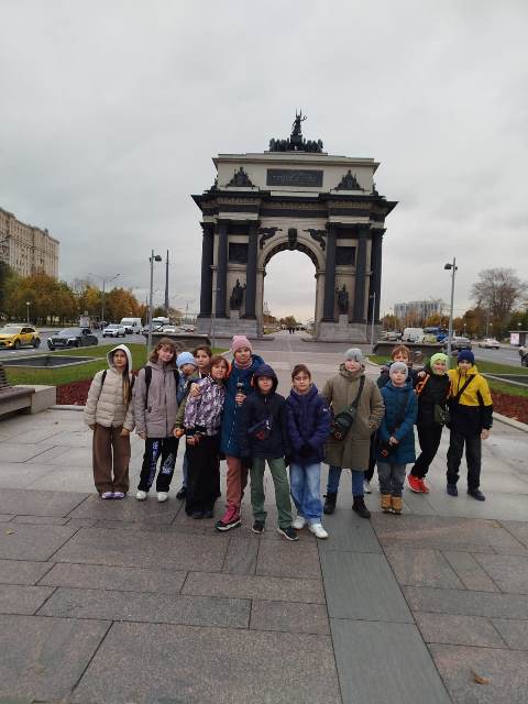 По дороге домой дети подошли к Триумфальной арке, которая увековечила подвиг русских воинов, победивших армию Наполеона.