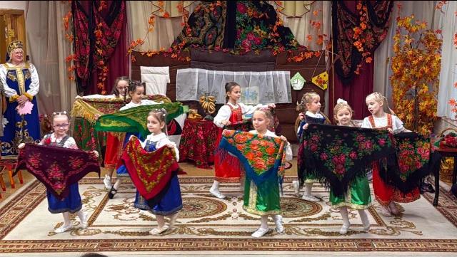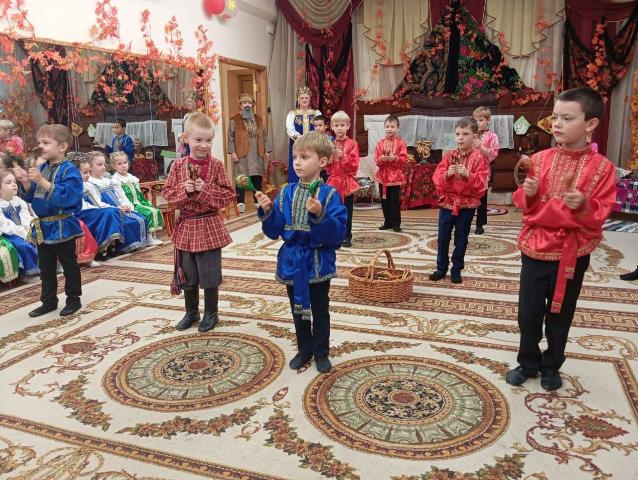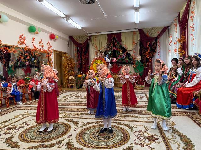 Ребята подготовительных групп оказались в русской избе и стали участниками настоящих деревенских посиделок. Дошкольники вспомнили русские пословицы о труде и воинской доблести, пели народные песни и задорные частушки, танцевали русские народные танцы, играли на ложках. Русская народная музыка, яркие народные костюмы показали весь колорит народного осеннего праздника, который помогает лучше понять культуру России и жизнь наших предков.