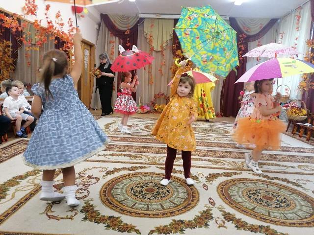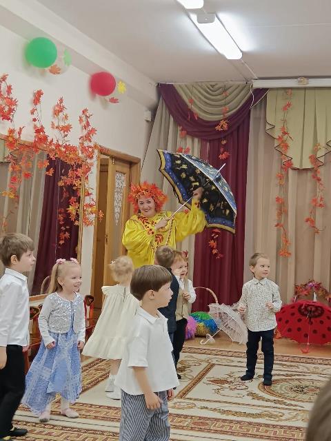 Красавица Осень заглянула и в наше дошкольное отделение "Солнышко", в каждую группу, к большим и маленьким. Она никого не оставила без внимания. Дети встречали ее как дорогую гостью - с песнями и стихами, танцами и хороводами, сказками-инсценировками, играми и шутками. Малышам было интересно играть с волшебным говорящим зонтиком, под которым оживали грибочки, ягодки и лесные зверюшки.