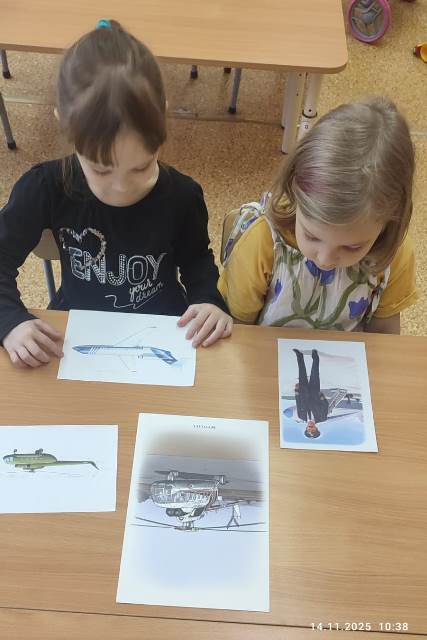 Дети посмотрели познавательные презентации: «Профессия — лётчик», «Лётчики-герои». С большим вниманием воспитанники рассматривали иллюстрации и открытки с изображением военно-воздушной техники: истребителей, бомбардировщиков, военно-транспортных самолётов, вертолётов и самолётов-беспилотников.