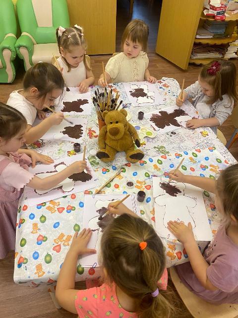 Воспитатели провели беседы: «Мой плюшевый друг», «Где живёт медведь?». Ребята нарисовали мишек, поиграли в подвижные игры: «У медведя во бору», «Как ходит медведь», «Медведь в берлоге».