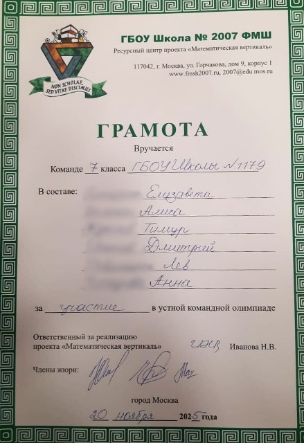 20 ноября команда 7 «М» класса приняла участие в устной олимпиаде по математике в ГБОУ Школа № 2007.