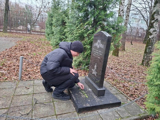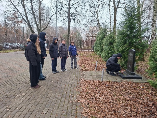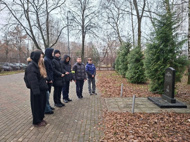 Ребята возложили цветы к памятнику ветеранам подразделения особого риска, морякам и морским пехотинцам, который находится рядом со школой.